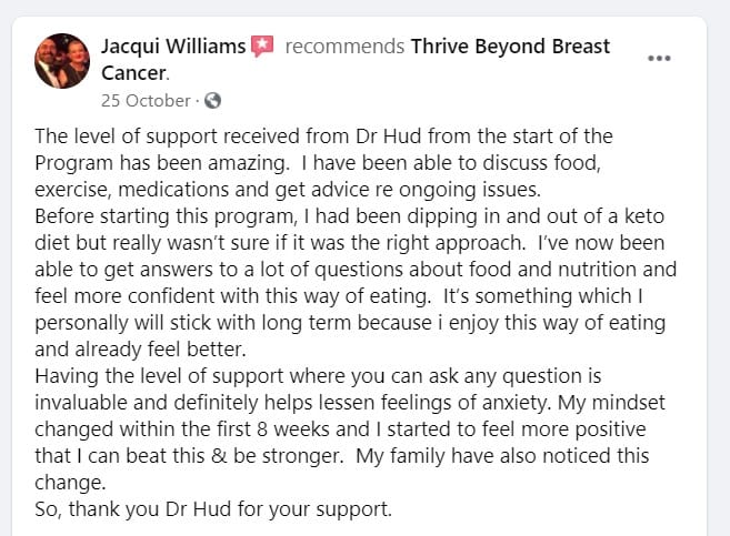 His coaching centres on key pillars of recovery, including strength training, nutrition, metabolic health, and building consistent habits. He supports women in regaining physical strength, improving energy levels, and restoring confidence in their bodies after treatment. The emphasis is on long-term health, not quick fixes, with a clear plan that patients can follow and adapt over time.